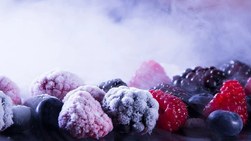 در صنایع غذایی، یکی از طلاییترین کاربردهای نیتروژن مایع، انجماد سریع یا IQF است؛ یعنی هر قطعه محصول (مثلاً دانههای ذرت، نخودفرنگی، میگو، تکههای مرغ، توتفرنگی، قارچ اسلایسشده) سریع و جداگانه منجمد شود تا به هم نچسبند و بافت سالمتری حفظ شود.